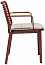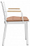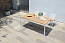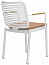 Подлокотники кресел и реечная столешница стола выполнены из тика. Он особенно устойчив к воздействиям температуры, влажности и соленой воды. Натуральная маслянистая смола сохраняет свои основные свойства неизменными на протяжении многих лет, требуя минимального ухода.
