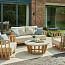 Диванная группа Woodland, рассчитанная на 4 персоны, выполнена в светлом бежевом оттенке с красивым контрастом деревянных рам, что делает ее уникальным дополнением к любому саду или патио. Этот современный, но неподвластный времени набор для отдыха - идеальный выбор для любого сада, патио, террасы или зимнего сада. Благодаря своему простому стилю и использованию натурального дерева комплект легко впишется как в современный, так и в традиционный сад.