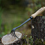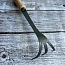 Трехзубцовый био-культиватор выкован вручную из одного куска шведской бористой стали и дополнен рукояткой из ясеня твердых пород.