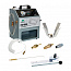 Установка INJ1000 представляет собой аэрозольный пневматический генератор. Сжатый воздух подается от внешней пневматической линии и регулируется встроенным редуктором давления. Игольчатый кран позволяет точно регулировать количество жидкости в аэрозольной смеси. Емкость из нержавеющей стали дает возможность применять агрессивные жидкости.